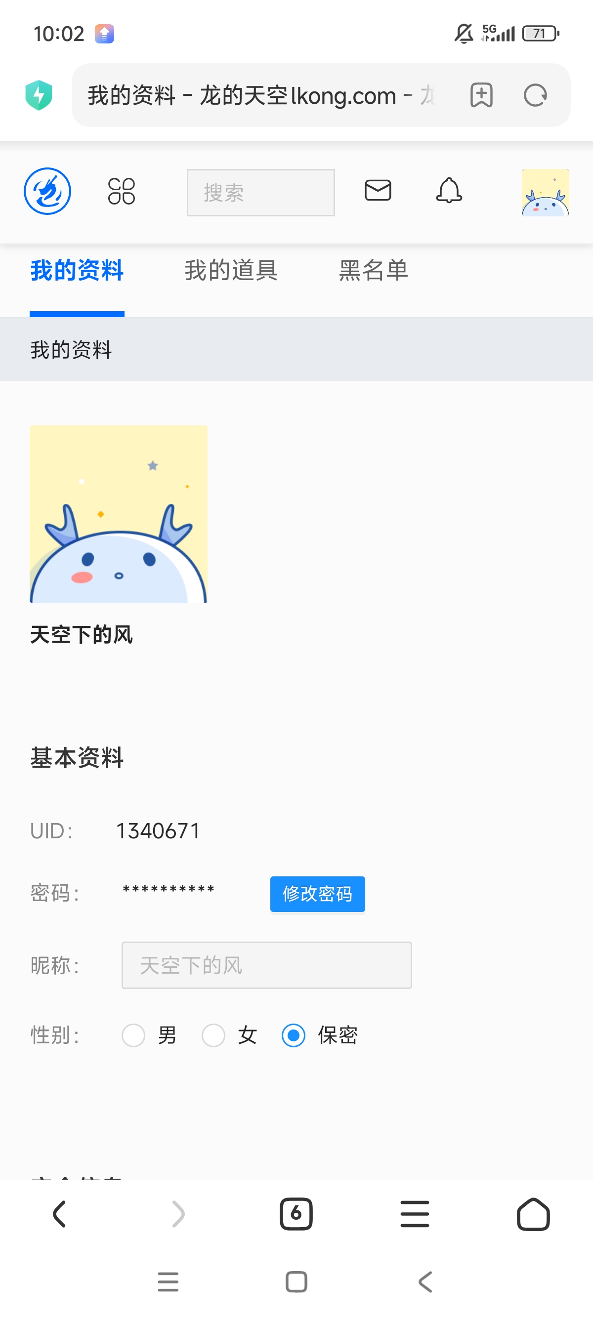 就截图龙空的个人中心页面就可以了。